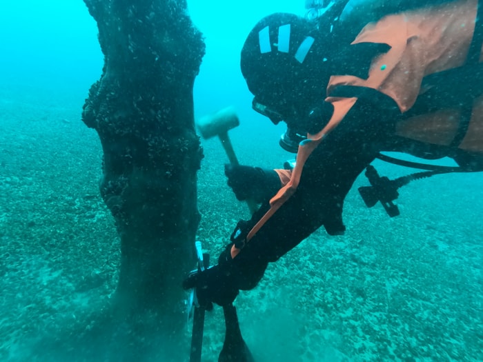 Avec des enregistreurs acoustiques autonomes (Hydromoth et SoundTrap). Plusieurs ont été déployés depuis le printemps 2025 sur deux sites, à différentes profondeurs et dans différents habitats. Ils sont relevés et remis en place toutes les 5 à 6 semaines, en plongée.